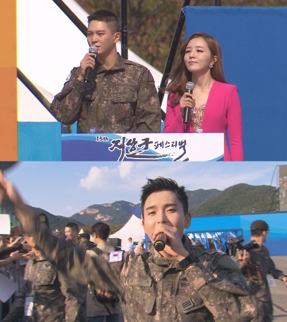 이번 추석연휴 동안 충남 계룡대에서 열린 ‘지상군 페스티벌’에 여섯 명의 연예인 출신 군 장병들이 한자리에 모였다. 신병교육대 조교로 근무 중인 주원부터 특급전사로 발탁된 임시완, 슈퍼주니어 려욱, 곧 제대를 앞둔 병장 이장우까지, 군대에서 나라도 지키고 여전히 잘생긴 미모도 지키고 있는 ‘오빠’들을 한밤이 포착했다.
