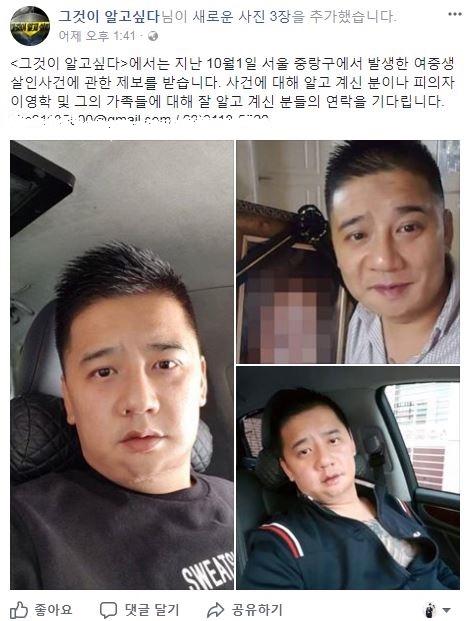 10일 SBS '그것이 알고 싶다' 측은 공식 SNS 계정에 "지난 9월 30일 서울 중랑구에서 발생한 여중생 살인사건에 관한 제보를 받습니다" 라는 글을 올렸다.