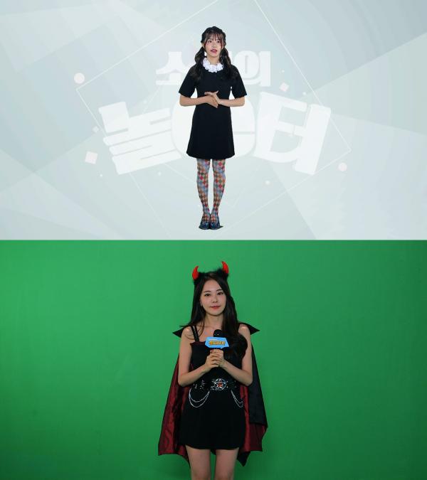 또한 ‘소혜의 놀e터’를 단독진행 하는 김소혜도 할로윈 코스프레를 선보여 시선을 사로잡았다. 김소혜는 검은 드레스와 얼굴에 그린 핏자국 등으로 마녀 코스프레를 했는데, 오싹하기 보다는 오히려 귀여워서 촬영현장의 제작진을 미소 짓게 만들었다는 후문.