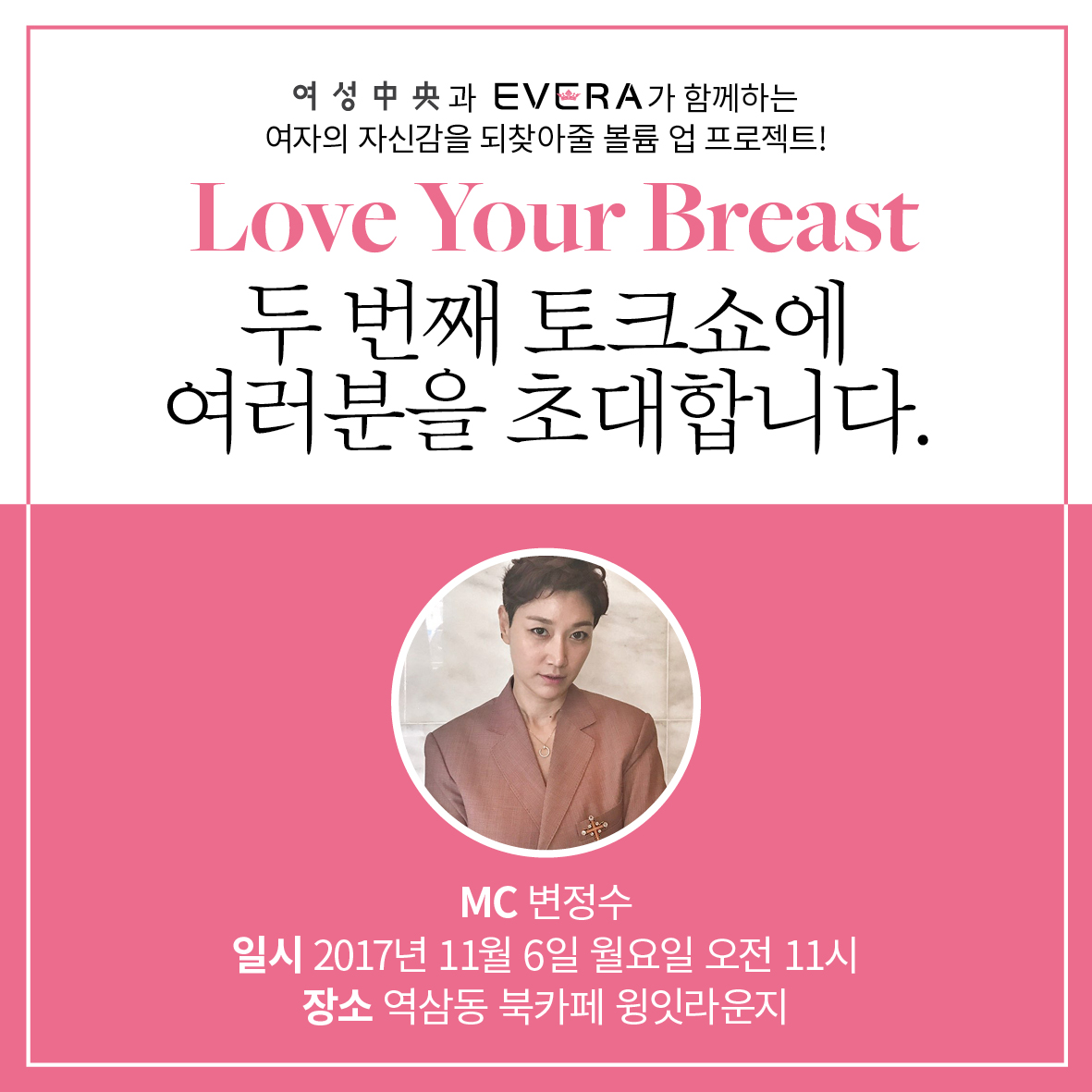 이브라는 오는 11월 6일 월요일 오전 11시 서울 강남구 역삼동 북카페 윙잇라운지에서 여성중앙, MC 변정수와 함께'Love Your Breast' 토크 콘서트를 진행한다.