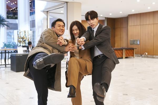 KBS 2TV 새 월화 드라마 ‘마녀의 법정’(극본 정도윤 / 연출 김영균 / 제작 아이윌미디어) 측은 3일 여아부의 최강 삼총사 마이듬(정려원 분)-여진욱(윤현민 분)-구석찬(윤경호 분, 이하 구계장)의 촬영 비하인드 컷을 공개했다.