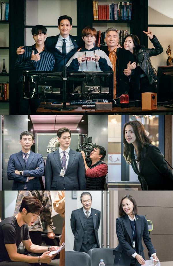 또 다른 사진 속 유지태는 쉬는 시간에도 한 치의 흐트러짐 없는 집중력으로 촬영을 준비하고 있다. 비행기 추락 사고의 진실을 찾아내기 위해 본격적인 반격에 나선 최강우의 달라진 분위기를 엿볼 수 있어 눈길을 끈다. 우도환 역시 진지한 눈빛으로 대본 열공 모드에 돌입해 남다른 열정을 보여주고 있다. 장하리 역의 류화영은 특유의 밝은 에너지로 카메라를 향해 장난기 어린 미소를 지으며 촬영장에 활력을 불어넣고 있다.