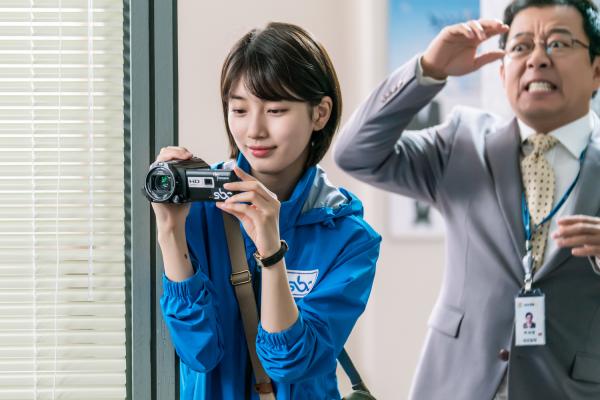 공개된 사진 속 홍주는 흥미로운 현장을 발견했다는 듯 미소를 지으며 캠코더로 재찬의 사무실을 찍고 있다. 부장검사 대영은 재찬에게 온몸으로 신호를 보내고 있고, 재찬은 그런 홍주를 발견하고 망연자실한 표정을 짓고 있어 웃음을 자아낸다.