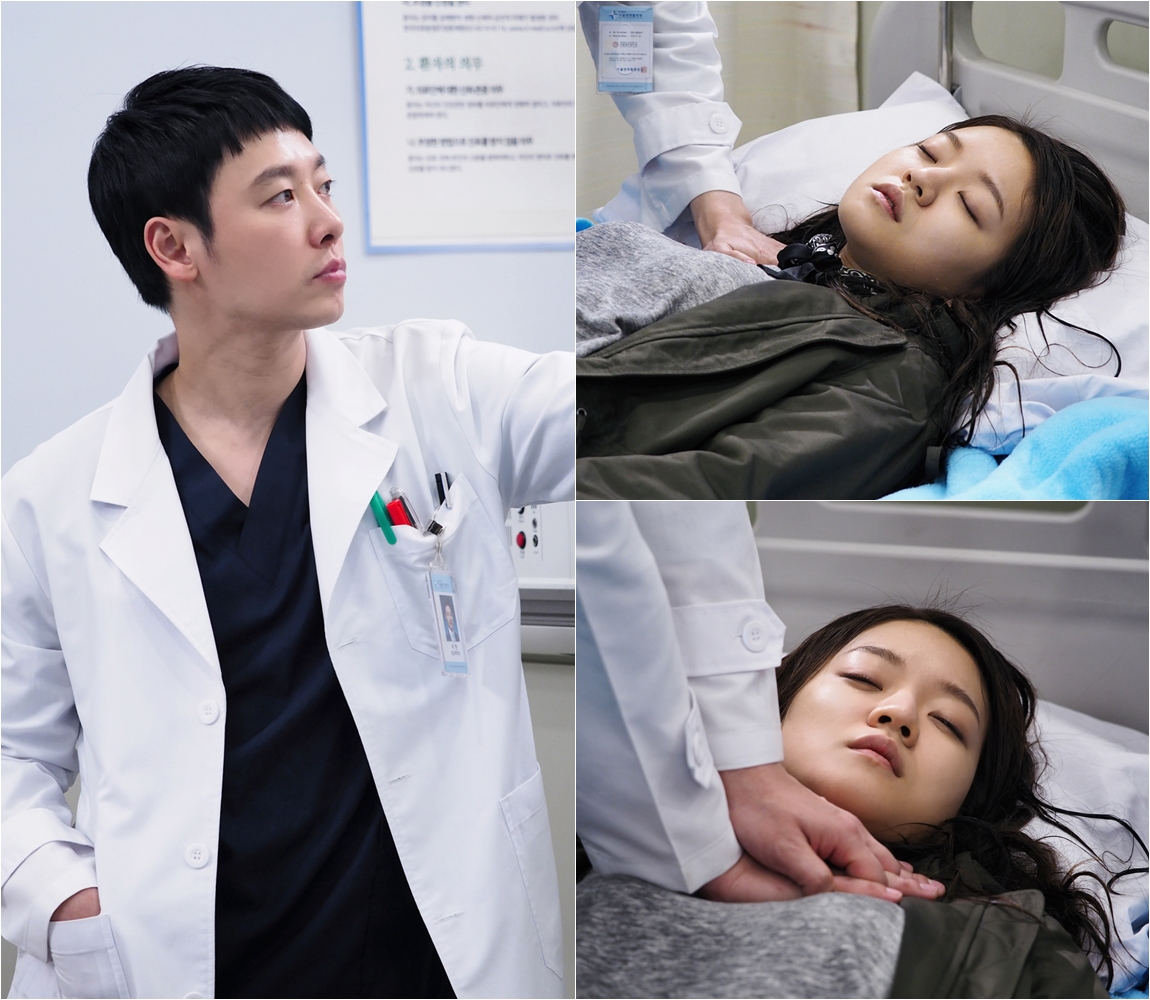 위험천만한 상황에 처한 고아성의 목숨을 구한 의사는 다름아닌 김동욱. 그는 심폐소생술 후 고아성의 곁에서 그의 상태를 체크하고 있다. 하얀 가운을 입고 일에 집중하고 있는 그의 프로페셔널한 의사 자태가 심쿵을 유발한다.