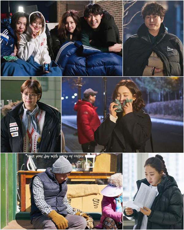 류수영(차정환 역)을 비롯해 코트 위에 패딩 장착은 기본, 이유리(변혜영 역)는 핫팩을 양 볼과 귀에 대고 추위를 피하고 있는가 하면 정소민(변미영 역)은 스카프를 두르고 추위를 피하고 있다. 또한 김영철(변한수 역)은 보기만 해도 따뜻한 털장갑과 모자를 착용한 채 고양이와 장난을 치고 있어 보는 이들로 하여금 미소를 자아내고 있다. 이미도(김유주 역) 역시 패딩을 챙겨 입은 채 대본 공부에 한창이다.