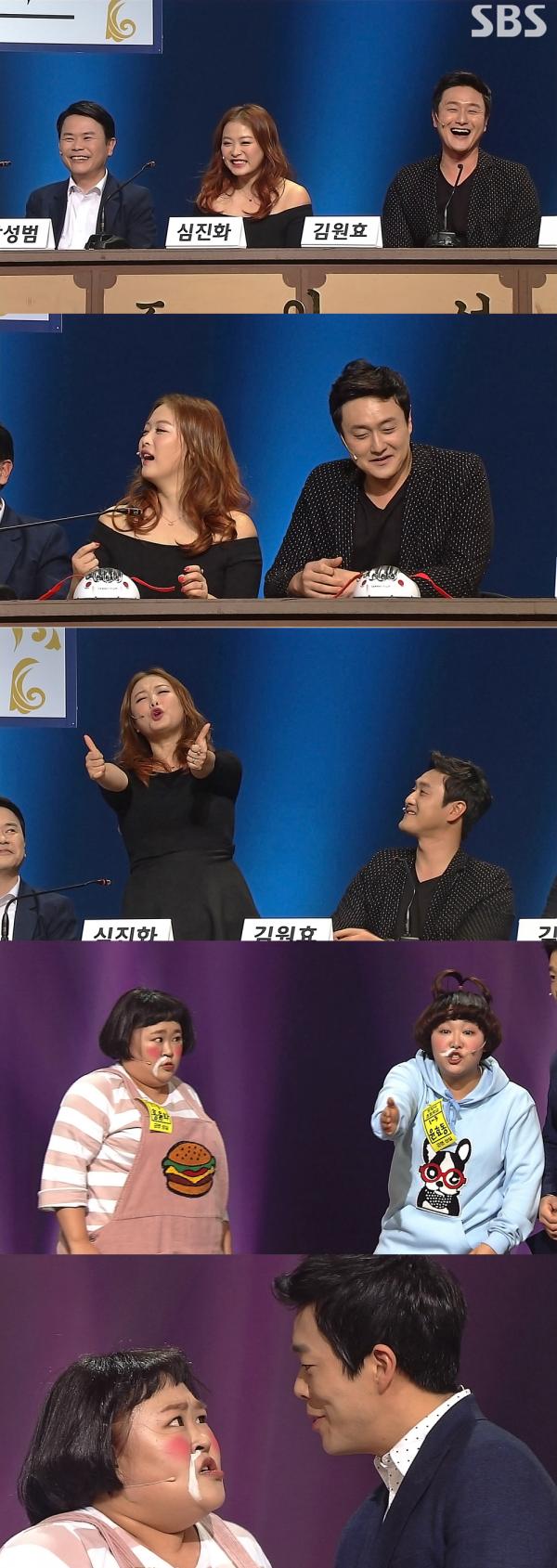 김원효와 심진화가 출연하는 코너는 인기 개그맨들을 소환, 그들의 리얼한 속내를 파헤쳐보는 ‘개그청문회’다. 개그맨 김원효는 애처가로 소문났다. 그의 아내 심진화는 최근 폭풍 다이어트로 15kg 감량에 성공해 인터넷을 뜨겁게 달구고 있다. ‘개그청문회’는 거짓말탐지기까지 동원해 이들 부부의 애정행각과 러브스토리의 진실을 파헤칠 예정.