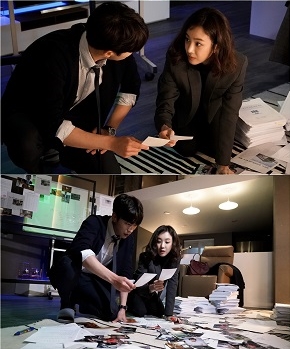 ‘백상호 자살 사건’의 자료들이 붙여진 사건 보드판을 비롯해 바닥에 빼곡히 뿌려진 서류와 사진 자료들 속에서 이들이 어떤 단서를 찾아낼 지 궁금증을 더한다.