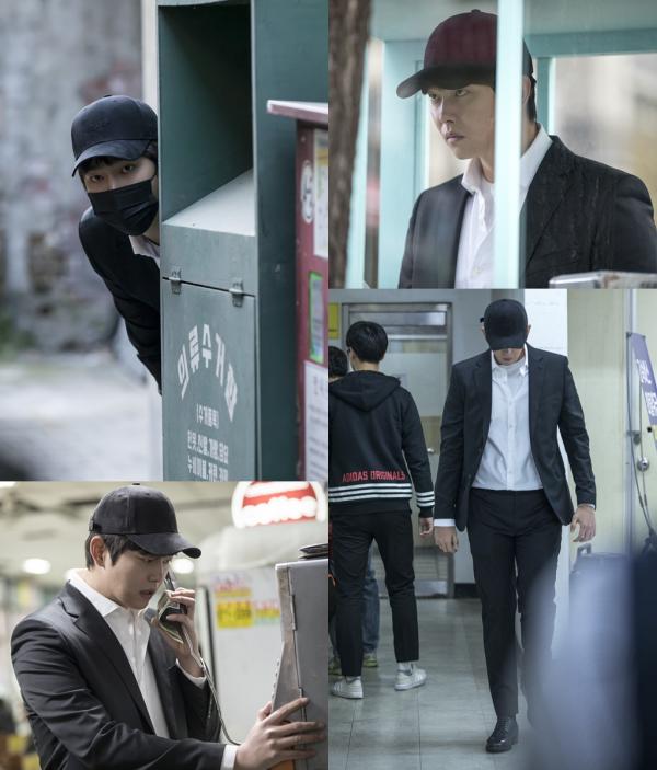 공개된 사진 속 윤균상은 누군가를 피해 숨어 다니는 듯한 모습이다. 그가 사형수라는 신분을 감안했을 때, 외부에 나와 있는 것 자체로도 의심스러운 상황. 여기에 모자와 마스크로 변장한 채 눈만 겨우 내놓은 윤균상의 모습은 수상함을 자아낸다. 윤균상은 의류수거함 옆에 숨어 얼굴만 빼꼼히 내놓고 동향을 살피는가 하면, 아무도 발견하지 못하도록 고개를 숙인 채 사람들 사이를 지나고 있다.