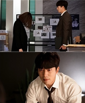공개된 사진 속 이듬은 민지숙 부장(김여진 분, 이하 민부장)의 사무실 앞에서 진욱을 기다린 듯 그 앞을 막아 서고 있어 눈길을 끈다. 무거운 표정으로 이듬을 바라보고 있는 진욱의 표정은 심상치 않은 분위기를 자아낸다