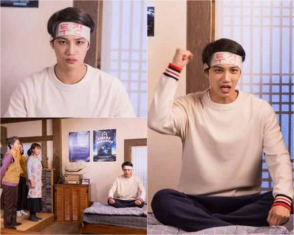 공개된 사진 속 카이는 ‘투쟁’이라고 적힌 머리띠를 두르고 결연한 표정으로 침대에 앉아 있다. 강렬한 눈빛으로 주먹을 꼭 쥐고 구호를 외치는 카이의 모습이 사뭇 비장해 보이지만 그를 지켜보고 서 있는 가족들은 그런 카이의 모습이 오히려 귀엽다는 듯 웃음을 감추지 못하고 있다.