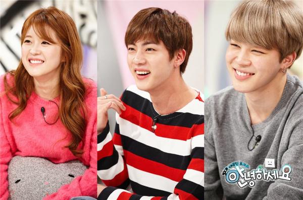 [스타인뉴스]빼어난 외모를 자랑하는 개그우먼 김승혜와 능글맞은 매력으로 팬들에게 더 친근감을 주는 방탄소년단 진과 지민이 KBS 2TV 대국민 토크쇼 〈안녕하세요〉에 출연해서 그간 숨겨온 입담을 과시했다.