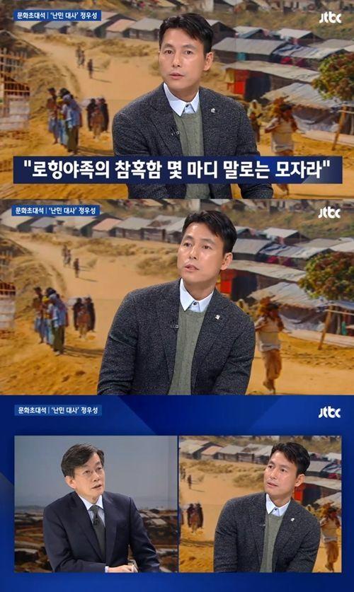 [스타인뉴스 이상백 기자]지난 14일 방송된 JTBC ‘뉴스룸' 문화초대석 코너에 배우 정우성이 출연했다. 이날 정우성은 유엔난민기구 친선대사 자격으로 출연했다. 그는 2014년 유엔난민기구 한국대표부 명예사절, 2015년에는 유엔난민기구 친선대사로 선정됐다.