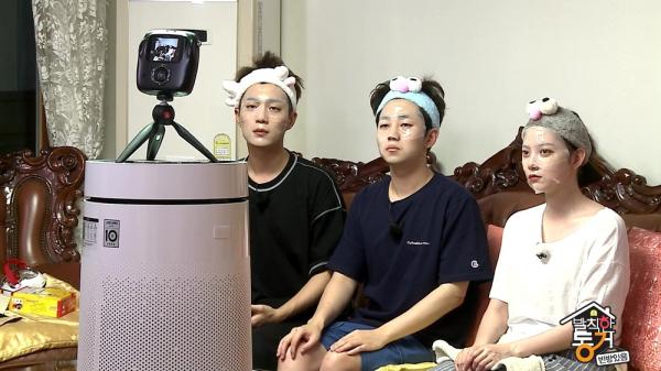 세 사람은 민낯에 팩을 붙이고 앙증맞은 헤어밴드를 착용한 채 카메라 앞에 나란히 앉아 있는 모습으로 폭소를 자아낸다.