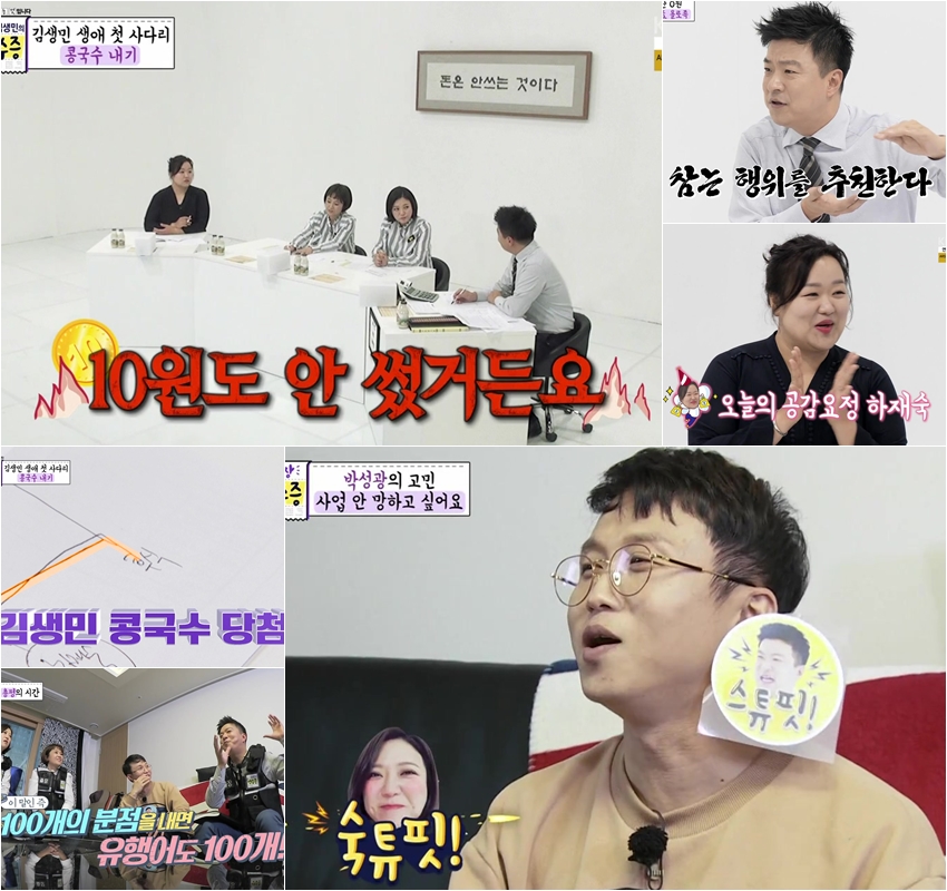 이에 각종 SNS와 커뮤니티 사이트에서는 "김생민 나라 잃은 표정 웃겨", "김숙 송은이 진짜 찰떡 명콤비", "박성광 진짜 귀 얇은 듯", "저거 맞는 말인 듯 일은 모르는 사람과 당당히 해라" 등 뜨거운 반응이 이어졌다.