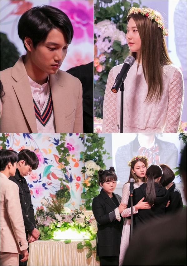 공개된 사진 속 카이는 붉어진 눈시울로 시선을 떨구고 있고 김진경은 애잔함을 담은 눈빛으로 희미하게 미소 지으며 카이를 바라보고 있다. 슬픔과 안타까움에 고개를 떨군 백철민과 김진경을 끌어안으며 울고 있는 여자친구들의 모습이 보는 이들의 가슴을 더욱 아프게 한다.
