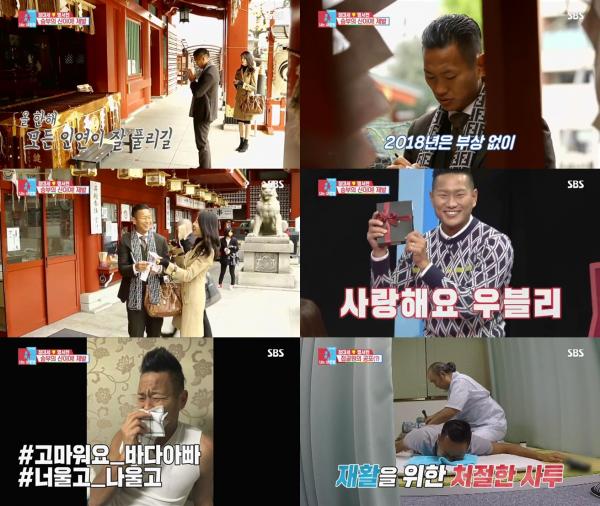 스튜디오에서 이 모습을 보던 추자현은 “효광 씨가 대세 씨에게 전해달라고 준 게 있다”며 갑자기 선물을 꺼냈다. 이에 정대세는 “울면 좋은 게 많구나”라며 활짝 웃어 모두를 폭소케 했다. 추자현은 “바다 보면서 엄청 울지 않았냐. 효광 씨가 (정대세 씨가) 너무 울어서 손수건이 모자랄 것 같다고 했다”라며 선물로 ‘손수건’을 건넸다. 또 추자현은 우효광이 친필로 쑨 '복' 족자를 장신영에게 선물로 전하기도 해 훈훈함을 자아냈다.