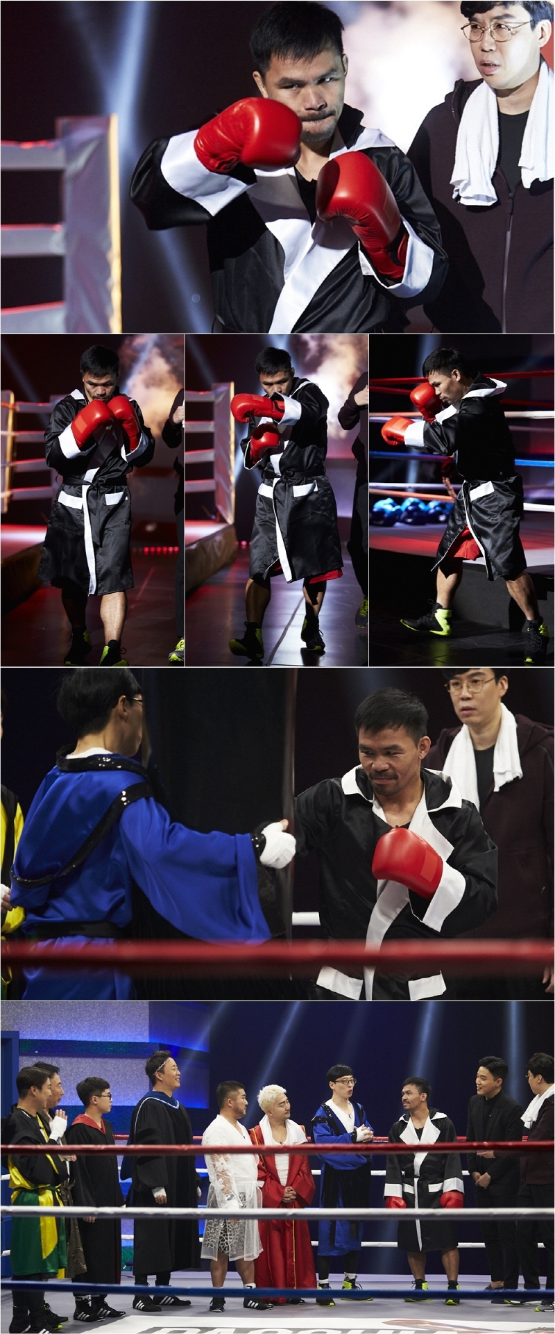 제작진에 따르면 이들의 첫 만남과는 전혀 다른 현장 분위기가 만들어졌다고. “지금부터 시작하겠습니다”라는 선언과 함께 파퀴아오는 실제 복싱 경기를 방불케 할 정도로 날카로운 눈빛과 표정으로 등장했다. 멤버들은 완벽하게 복싱 세계챔피언의 모습으로 변신한 그에게서 눈을 떼지 못하고 잔뜩 긴장한 모습을 보였다는 전언이다.