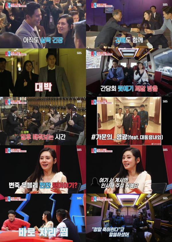 ‘최고의 1분’은 추우부부가 차지했다. 이 날 방송에서는 지난달 중국에서 열린 한중 국빈만찬 뒷이야기가 공개돼 눈길을 끌었다. 문재인 대통령 내외와 시진핑 주석 내외가 참석하는 일정에 초대된 추자현-우효광은 삼엄한 경호를 뚫고 재중 한국인 동포 간담회 행사장에 입장, ‘한중 대표 커플’의 인기를 뽐냈다.