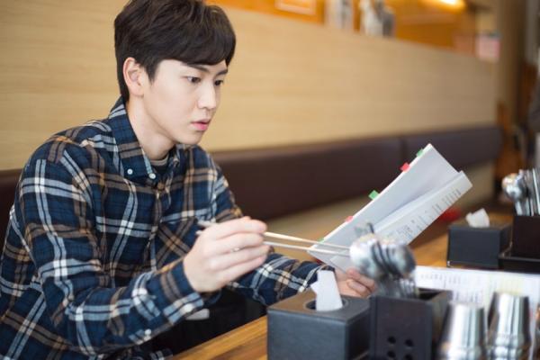 떡볶이를 앞에 두고도 대본에만 열중하고 있는 그는 젓가락을 허공에 휘적이면서도 눈을 대본에서 떼지 못하고 있어 연기에 대한 그의 열정을 고스란히 느끼게 한다.