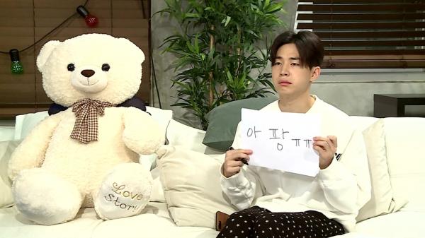 그는 ‘아팡ㅠㅠ’을 시작으로 모든 답변을 스케치북에 글로 적어서 표현했다고 전해져 기대감이 더해지고 있다.