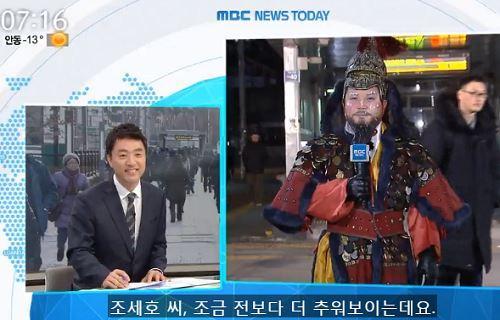 이날 방송에서 조세호 기상캐스터는 한파에도 불구하고 본분을 잊지 않고 최선을 다하는 프로의 면모를 드러내 뜨거운 반응을 보이고 있는 상황이다.
