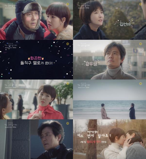 좀 살아본 언니 오빠들이 서툴지만 특별한 사랑을 한다. 이 사랑을 감우성, 김선아라는 특별한 배우들이 그려낸다. 죽은 줄만 알았던 연애세포가 깨어나고, 키스 한 번으로 가슴이 쿵 떨려오는 어른들의 화끈한 사랑이야기. 40초 가량의 짧은 영상으로도 이토록 시선을 강탈한 드라마 ‘키스 먼저 할까요’의 첫 방송이 설레도록 기다려진다.