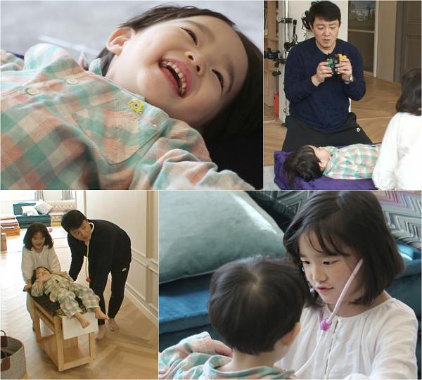 이날 이범수는 아토피 피부염 징조가 보여 병원에서 검사를 받아야 하는 소을의 긴장을 풀어주기 위해 병원놀이를 준비했다. 이에 막내 다을이 환자, 이범수와 소을이 각각 의사 역할을 맡아 ‘소다 클리닉’을 오픈 했다.