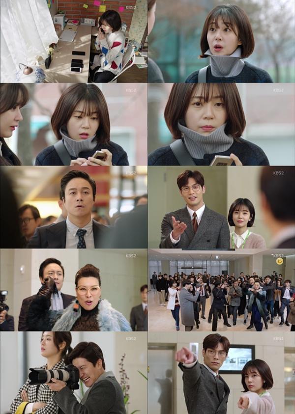다음날 윤이는 콧노래까지 흥얼거리며 기분 좋게 출근한 봉전무에게 “로비에 손님이 찾아왔답니다”라며 “젊은 여성분인데… 약간 모델 느낌 난다는데요?”라고 말해 봉전무의 호기심을 자극했던 터. 하지만 로비로 내려온 봉전무는 갑작스레 자신에게 몰려들어 질문 세례를 쏟아내는 기자들에 둘러싸인 채 당황했고, 결국 자신을 쳐다보고 있던 윤이와 치원을 보며 분함으로 이를 갈았다. 그런 봉전무의 모습을 보며 치원은 “어우… 많이 왔네… 요새 특종거리가 없어서 일주일 동안… 1면에 당신 기사로 장식될 거에요. 축하 합니다”라며 봉전무의 화를 돋웠다.
