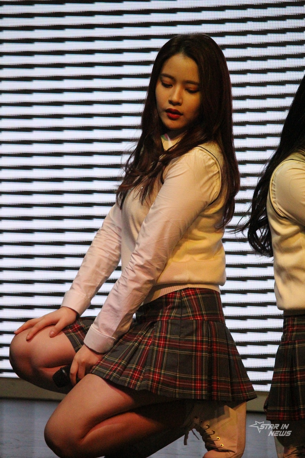 쇼케이스에 참석한 멤버 슬비가 포토 타임을 갖고 포즈를 취하고 있다.