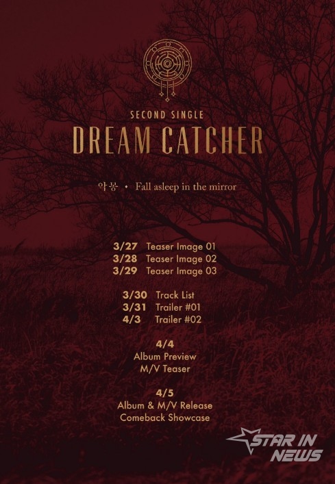 [스타인뉴스 한재훈 기자] 오는 4월 5일 돌아오는 걸그룹 '드림캐쳐'가 24일 새벽 0시에 두 번째 싱글 앨범 발매 일정을 공개했다.