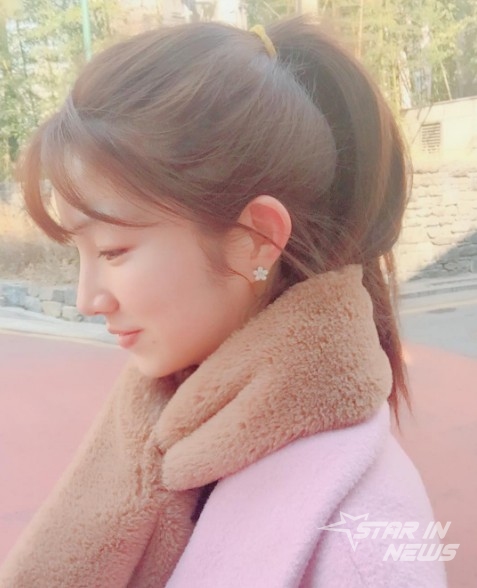 사진에는 팬들이 '목도리하고 분홍 털코트 너무 잘 어울려요ㅎㅎ 수줍은 미소?^0^', '현모양처 지엔', '귀에 봄 꽃이 피었네요♡' 등의 반응을 보이고 있다.