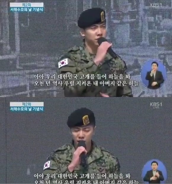 24일 대전 유성구 국립대전현충원에서 열린 '제2회 서해수호의 날 기념식'에서 이승기(상병)가 합창단과 함께 국민대합창을 했다.