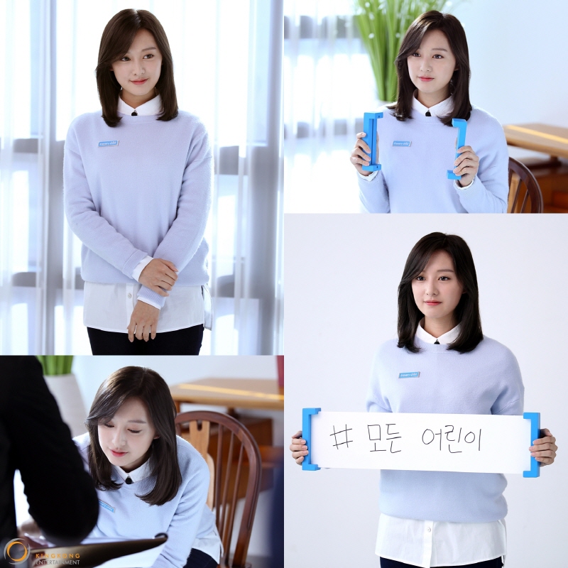 또 다른 사진 속 김지원은 미소를 살짝 지은 채 '2016 연말 캠페인-위액션[#every child]'의 괄호 기호를 들고 있는가 하면, 그의 정갈한 글씨체로 '#모든 어린이'가 적혀 있는 괄호 판넬을 드는 등 촬영에 집중하고 있어 눈길을 끈다.