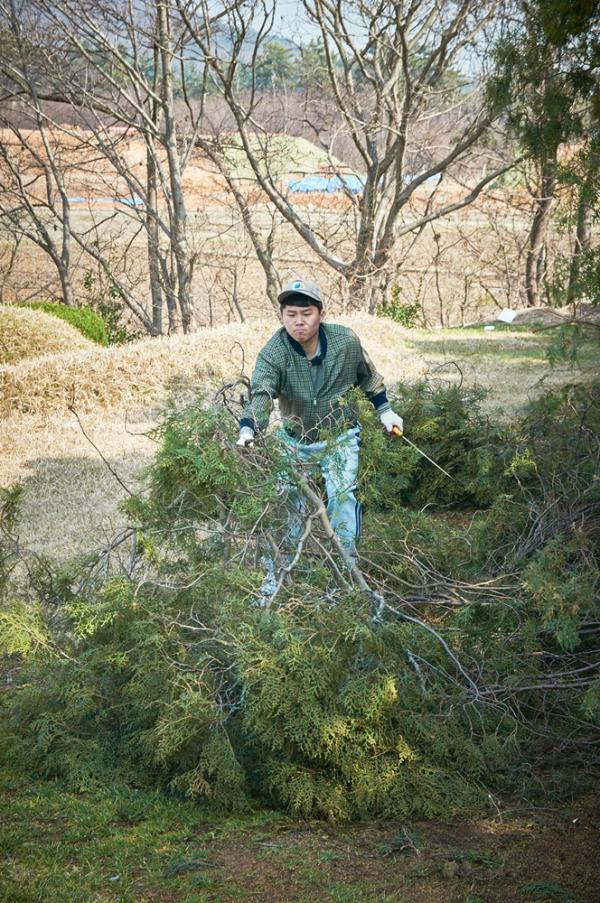 공개된 사진 속 양세형은 완벽한 ‘꼬마 영농 후계자’로 변신해 눈길을 모은다. 그는 목공용 장갑을 끼고 자신보다 커다란 나무와 거친(?) 씨름을 하고 있어 웃음을 자아낸다.