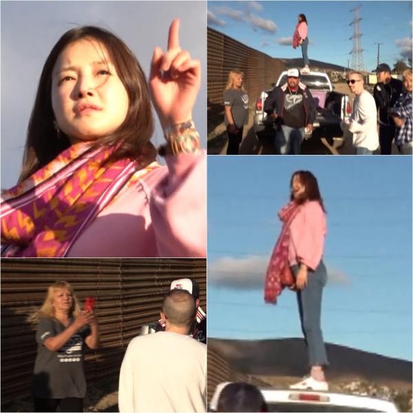 이시영은 두려움 없이 과감하게 트럭 위로 올라갔고 트럼프 장벽을 눈앞에서 제일 먼저 마주했다.