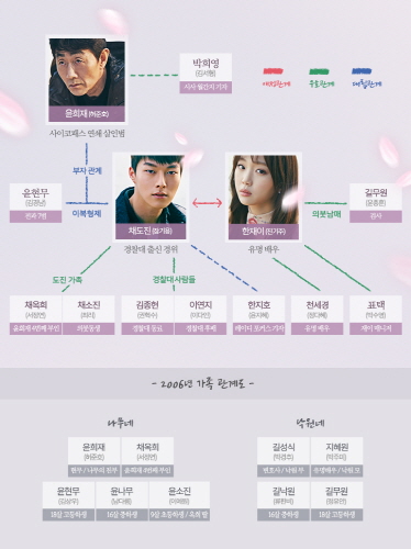 공개된 인물관계도에는 첫사랑의 추억을 안고 각자 경찰과 배우로 살아가고 있는 채도진과 한재이의 인물 관계가 정리돼 있는데, 중학생이었던 지난 2006년부터 성인이 된 현재까지 한눈에 들어와 시선을 고정시킨다.