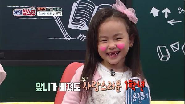 앞니가 다 빠진 일곱살 지민이의 등장에 홍석천은 물론 전 출연자들은 얼굴에 미소가 떠나질 않았다. 녹화 내내 지민이가 대답하는 모습 하나하나가 귀여워 어쩔 줄 몰라 하는 모습이 역력했다. 특히 지민이가 “동생 안누르가 엄마한테 혼날 때 기분이 좋아요”라는 말을 듣자마자 박장대소 하며 “귀여워∼∼”를 연발했다.