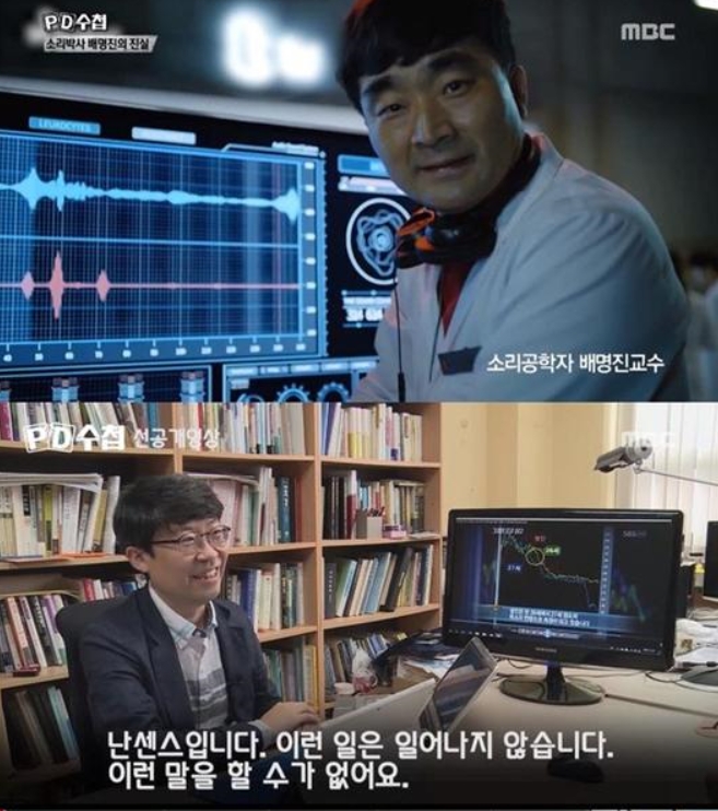 ‘PD수첩’ 제작진은 그동안 ‘소리공학’을 바탕으로 음성 분석 분야에서 권위를 자랑해 온 배명진 교수의 성과에 의구심을 품어 온 것으로 알려져 있다.