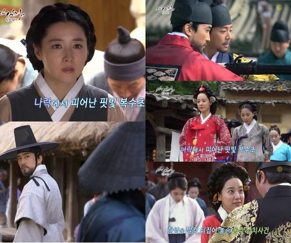 한편, 으슥한 길을 가던 정순옹주(이주연 분)는 의문의 사나이들에게 습격을 당하는 일이 생긴다. 이때 등장한 휘음당 최씨(오윤아 분)에 의해 목숨을 건지게 된 옹주는 궁궐뿐만 아니라 양류지소에도 휘음당을 데리고 나타나게 되는 것이다.