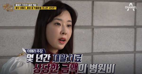 한편 이매리는 지난 4일 채널A ‘풍문으로 들었쇼’에 출연해 제작진이 부상 은폐를 종용해 7년간 방송에 나타날 수 없었다고 폭로했다.