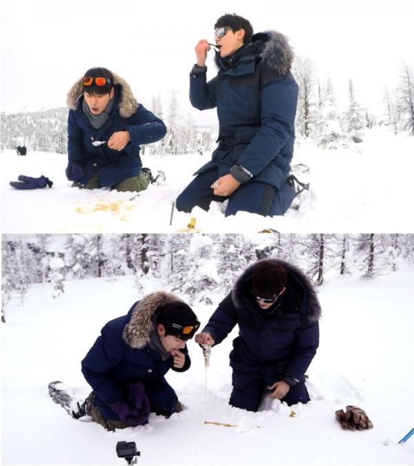 헬기에서 로키산맥의 중턱에 내린 두 사람은 배우 이미지를 완전히 포기한 채, 땅바닥에 그대로 엎드려 눈을 퍼먹는 모습을 선보여 모두를 경악하게 만들었다. 사실 이것은 ‘메이플 테피’라는 자연 그대로의 눈 위에 시럽을 부어 먹는 방법으로,캐나다에서 요즘 핫한 체험 중 하나를 소개한 것.