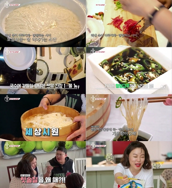 이날 방송에서 최화정은 삶은 국수를 시원하게 만들고 간장 양념장에 담갔다가 바로 먹는 방법을 소개했다. 이영자 와 송은이는 간장국수를 맛본 뒤 칭찬을 아끼지 않았다.