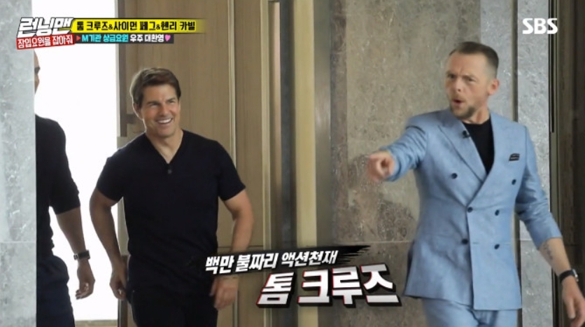이날 방송에는 예고편만으로 화제가 된 영화 '미션 임파서블: 폴 아웃'의 배우 톰 크루즈, 헨리 카빌, 사이먼 페그가 전격 출연해 '여름특집! 잡아줘 프로젝트 2탄 : 잠입요원을 잡아줘' 특집으로 함께 했다. 이번 한국 방문이 9번째가 된 톰 크루즈는 "'런닝맨'에 나올 수 있어서 너무 기쁘다"고 말했고, 한국을 첫 방문한 헨리 카빌도 "너무 설레고 기대가 된다. 초대해주셔서 감사하다"는 마음을 전했다. 사이먼 페그 역시 "두 번째 한국 방문이다. 이 시간을 즐기고 있다"며 뜻밖의 '손가락 하트 어택'으로 '런닝맨' 멤버들을 열광시켰다. 이에 톰 크루즈와 헨리 카빌도 하트 어택에 동참하며 다양한 하트를 만들어내 웃음을 자아냈다.