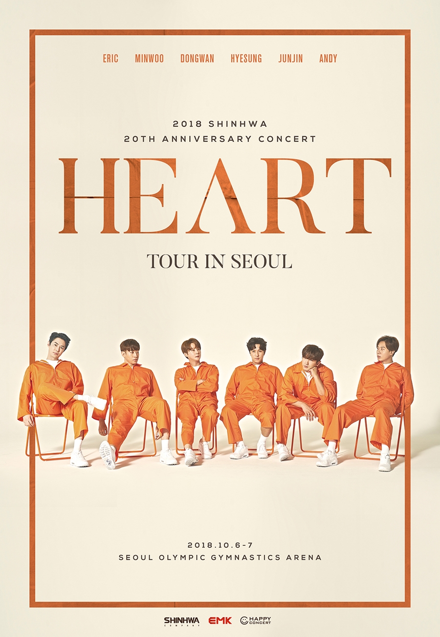 한편, 오는 10월 6일(토), 7일(일) 양일 간 서울 올림픽공원 체조경기장에서 개최되는 신화 데뷔 20주년 기념 콘서트 ‘HEART’의 공식 팬클럽 선예매는 인터파크 티켓 사이트를 통해 오늘(3일) 오후 8시 단독 오픈되며, 일반예매는 5일(수) 오후 8시에 진행된다.