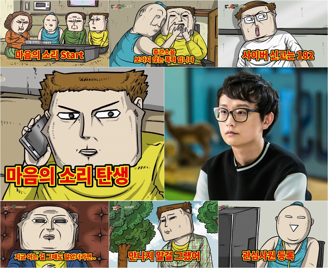 한편, '마음의 소리'는 포털 사이트 네이버를 통해 무려 10년간 인기리에 연재중인 동명의 웹툰을 기반으로 KBS 예능국, 포털 사이트 네이버, 판권을 소유한 공동 제작사 크로스픽쳐스(주)가 의기투합해서 만드는 작품이다.