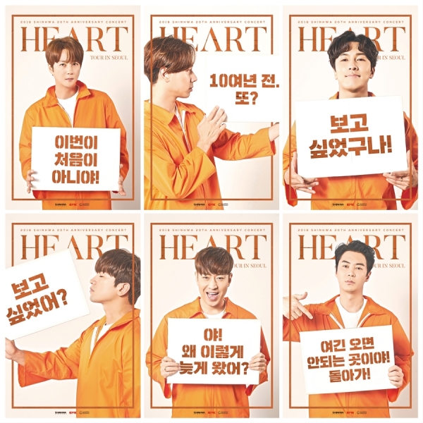 한편 지난 28일(화) 20주년 기념 스페셜 앨범 ‘HEART’ 발매한 신화는 오는 10월 6~7일 양일간 서울 올림픽공원 체조경기장에서 ‘2018 SHINHWA 20th ANNIVERSARY CONCERT ‘HEART’ TOUR IN SEOUL’을 개최하며, 오는 10월 13일(토) 대만, 11월 24일(토) 홍콩 등 해외 투어를 이어나갈 예정이다.