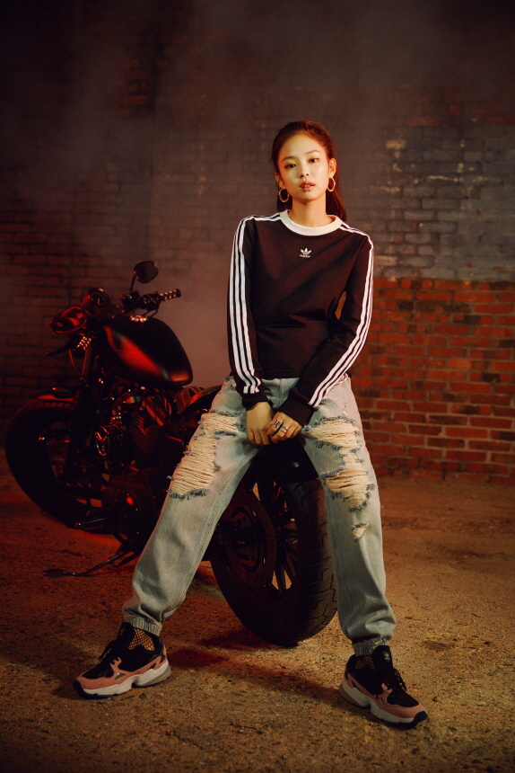 블랙핑크는 화보 속에서 90년대의 감성을 토대로 획기적인 디자인과 실루엣 그리고 신선한 컬러 조합으로 만들어진 팔콘 스니커즈를 완벽하게 소화했다. 특히 블랙핑크의 멤버 제니는 레트로 스타일의 삼선 스웨트 셔츠와 보이시한 진을 매치해 캐주얼하면서도 개성이 넘치는 룩을 선보였다.