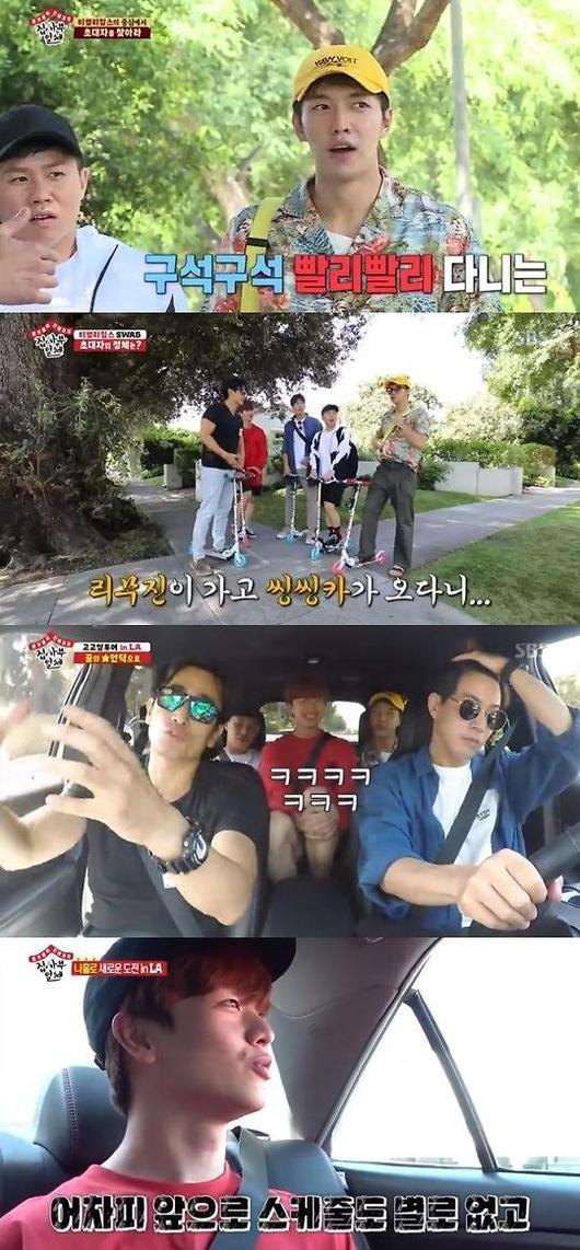 차인표가 준비한 건 킥보드였다. 이승기는 "여기 사람들은 전동 킥보드를 타는데 이건 수동 아니냐"라며 황당해했다. 차인표는 "수동이 구석구석 볼 수 없다. 여러분 시간이 없다"라며 출발했다. 이승기와 이상윤이 "우리한텐 쉽지 않다. 너무 낮다"라며 킥보드 크기에 당황하자 양세형은 "비벌리힐스 비벌리힐스"라며 한껏 신난 모습을 보였다. 다섯 명은 킥보드로 LA 스웨그를 뽐내려 했지만 비벌리힐즈 주민들은 다섯 명을 보고 웃었다.