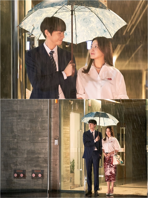 그런가 하면 김영광은 훤칠한 키와 남다른 비율로 완벽한 슈트핏을 자랑해 멋짐의 정석을 선보이고 있다. 경쾌하게 입 꼬리를 씩 올리는 싱그러운 미소로 김희선에게 화답해 설렘을 증폭시킨다. 또한 김희선이 건넨 우산을 받아 든 김영광은 비를 맞지 않기 위해 김희선에게 바짝 밀착하는 ‘직진 연하남’의 패기를 발산해 심쿵을 유발한다.