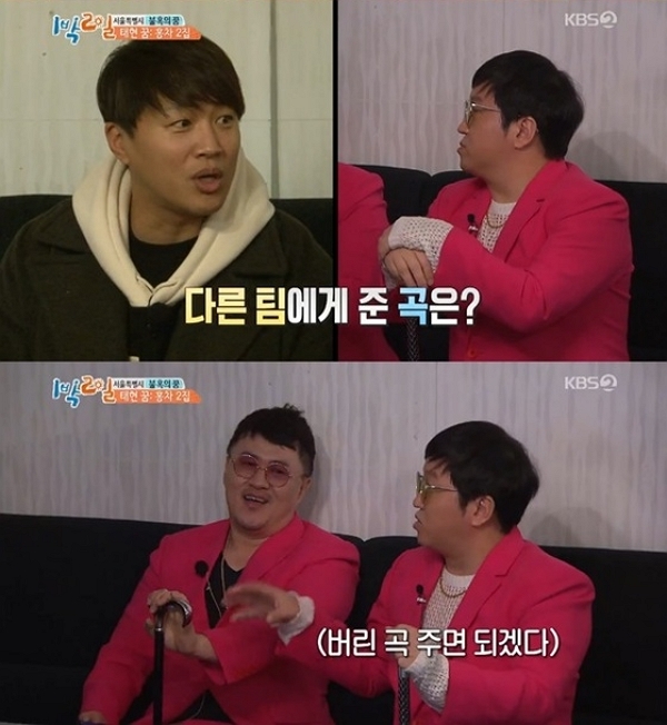 이후 차태현이 "다른 사람한테 곡 준 적 있냐"고 묻자 정형돈은 "줄 사람이 있어야 주지. 버린 곡 주면 되겠다"고 말해 웃음을 안겼다.